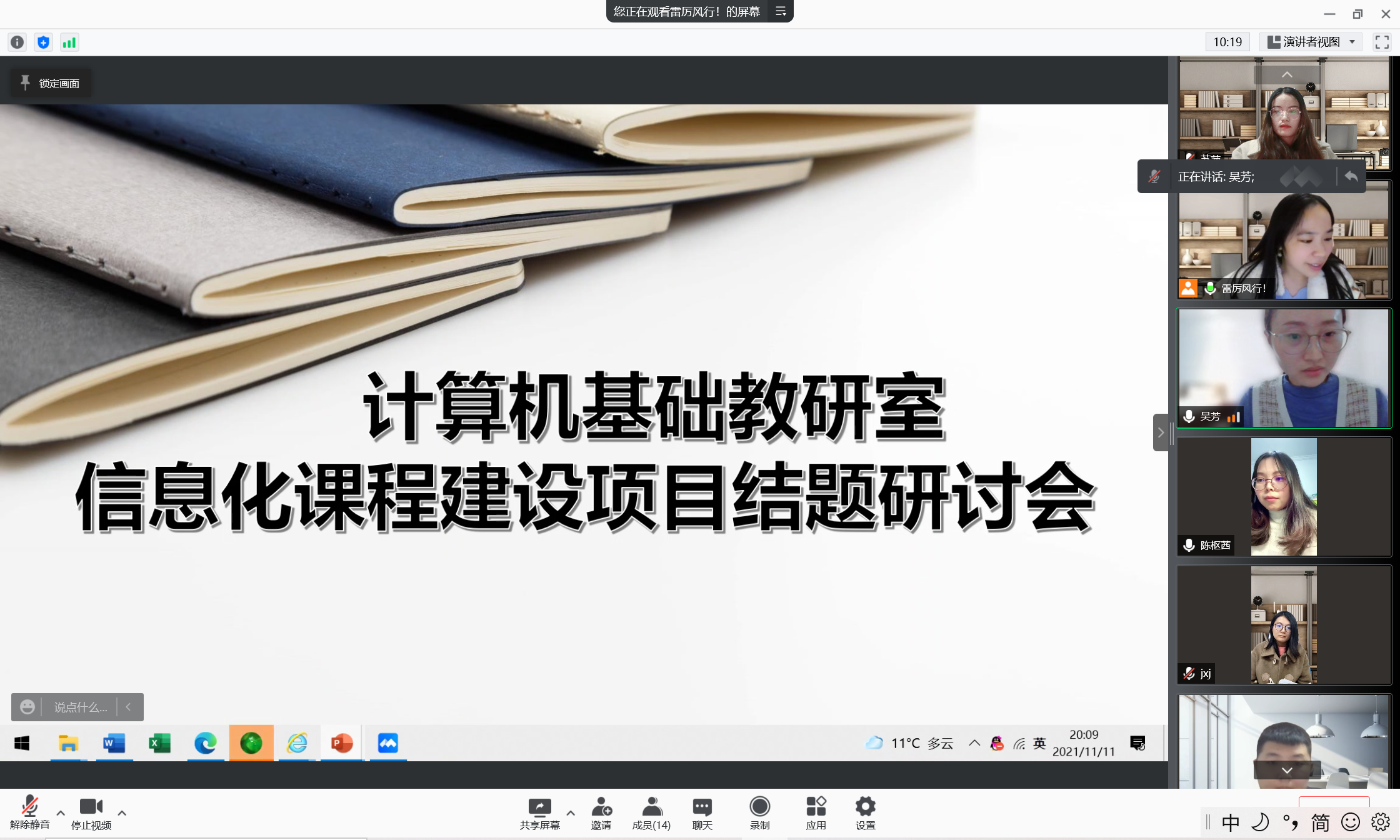 会上,刘琴琴、熊芳芳、陆盈三位计算机基础课程负责人分别介绍了目前超星平台建设情况,并指出了部分需要改进的问题。她们表示信息化课程建设离不开团队的协作,希望基础课程组的所有教师协助课程组负责人统筹安排。课程负责人组织成员分工协作,加快建设步伐,提升课程建设成效。