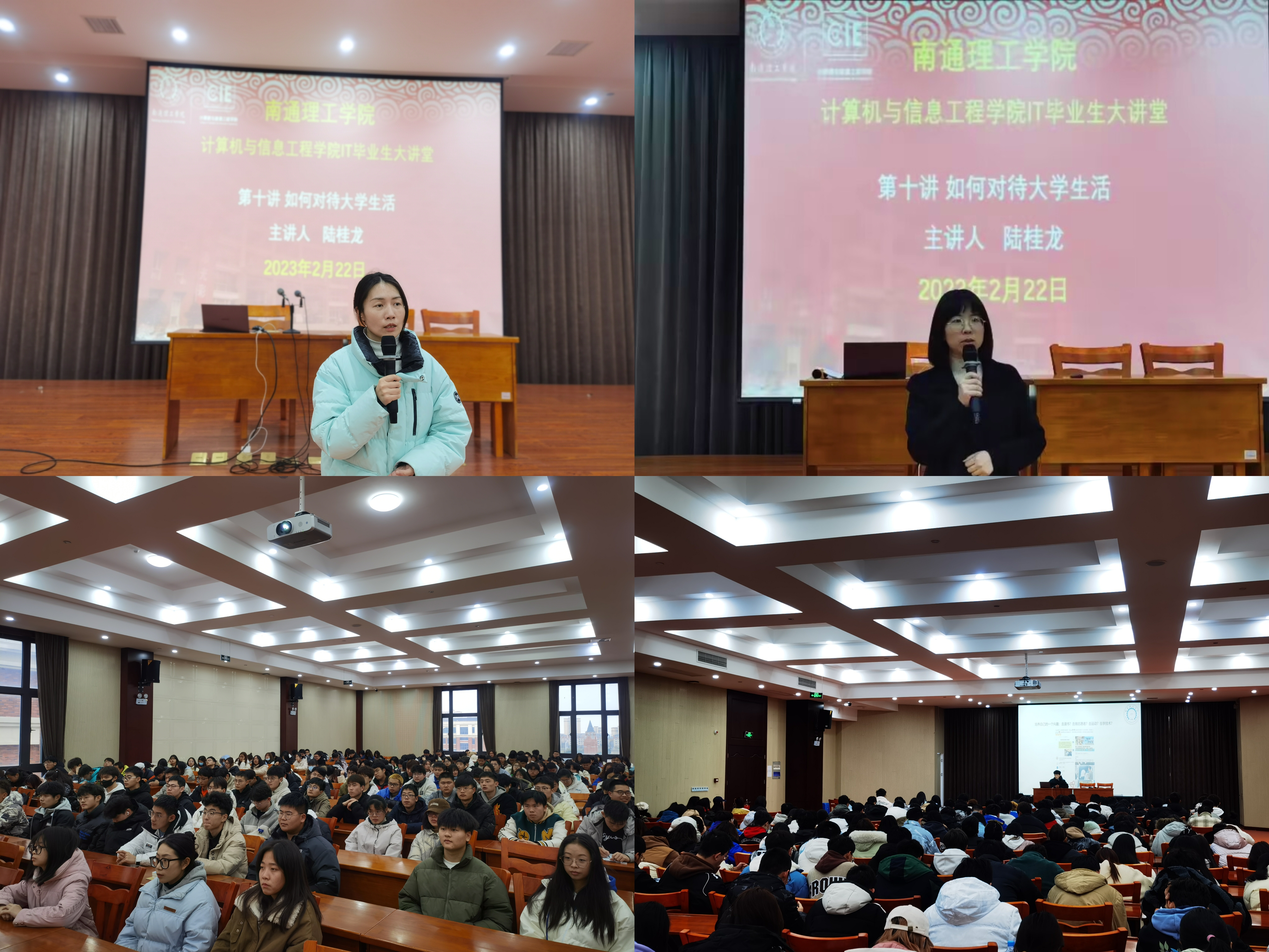 讲座上,陆桂龙同学从选择有效的学习方法、参加科技竞赛、培养适合自己的兴趣爱好、学会规划与树立目标四个方面,详细地讲述了“如何对待大学生活”。陆桂龙同学重点指出在学习的过程中,要学会选择有效的学习方法,讲究学习效率。在进阶学习方面,他重点鼓励多实操、多参加科技竞赛、多考实用证书。同时,陆桂龙同学根据自身的考研经验,重点强调了考研要提前搜集信息,学会循序渐进,合理安排规划目标,学会调整心态,形成正向反馈。