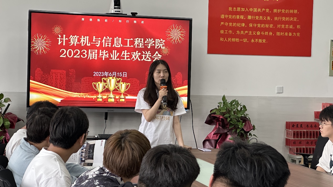 忆似水流年,展望如画未来。时光荏苒,又是一年毕业季,为了欢送大四学生,bwin必赢于6月15日在实验楼210举行2023届毕业欢送会。本次活动由学院副书记副院长卢曦主持,院长、副院长王岩、2023届毕业生参加本次活动。