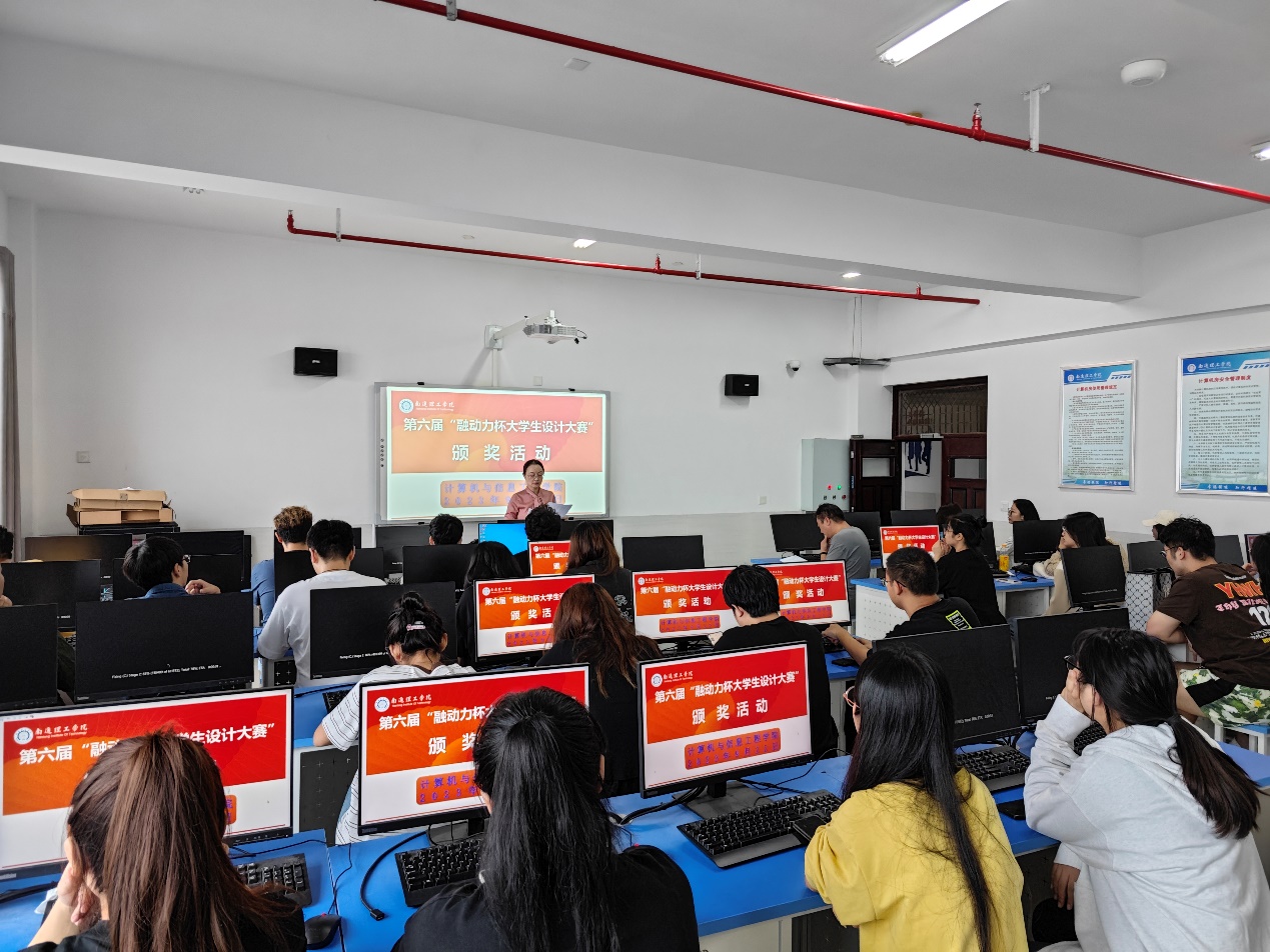 学校领导和师生高度重视本届“融动力杯大学生设计大赛”,赛时共收到有效报名作品900余件,涉及作者500多人次,经各组专业评委将作品类别统一评审,按比例,分别评选出一、二、三等奖作品共40余项。张院长、数媒专业教师和企业老师分别为获奖学生颁发了奖品和证书。颁奖现场,刘琴琴主任对获奖同学表示热烈的祝贺,并对参与活动组织的老师和学生表示感谢,她表示此次大赛不仅给同学们提供了一个表现自我的机会,还展现了理工学子的才情智慧、艺术品格以及专业技术!