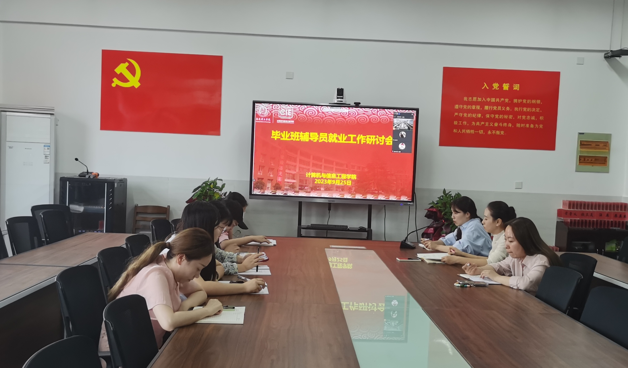 为进一步总结我院2023届毕业生就业工作的经验做法,深入研讨和扎实推进2024届毕业生高质量就业工作,9月25日在新实验楼210会议室召开毕业班辅导员就业工作研讨会,海安校区辅导员通过腾讯会议同步参加研讨。党总支副书记副院长卢曦、分团委书记郝佳萍、毕业班辅导员参加本次研讨会,会议由就业办公室主任徐畅主持。