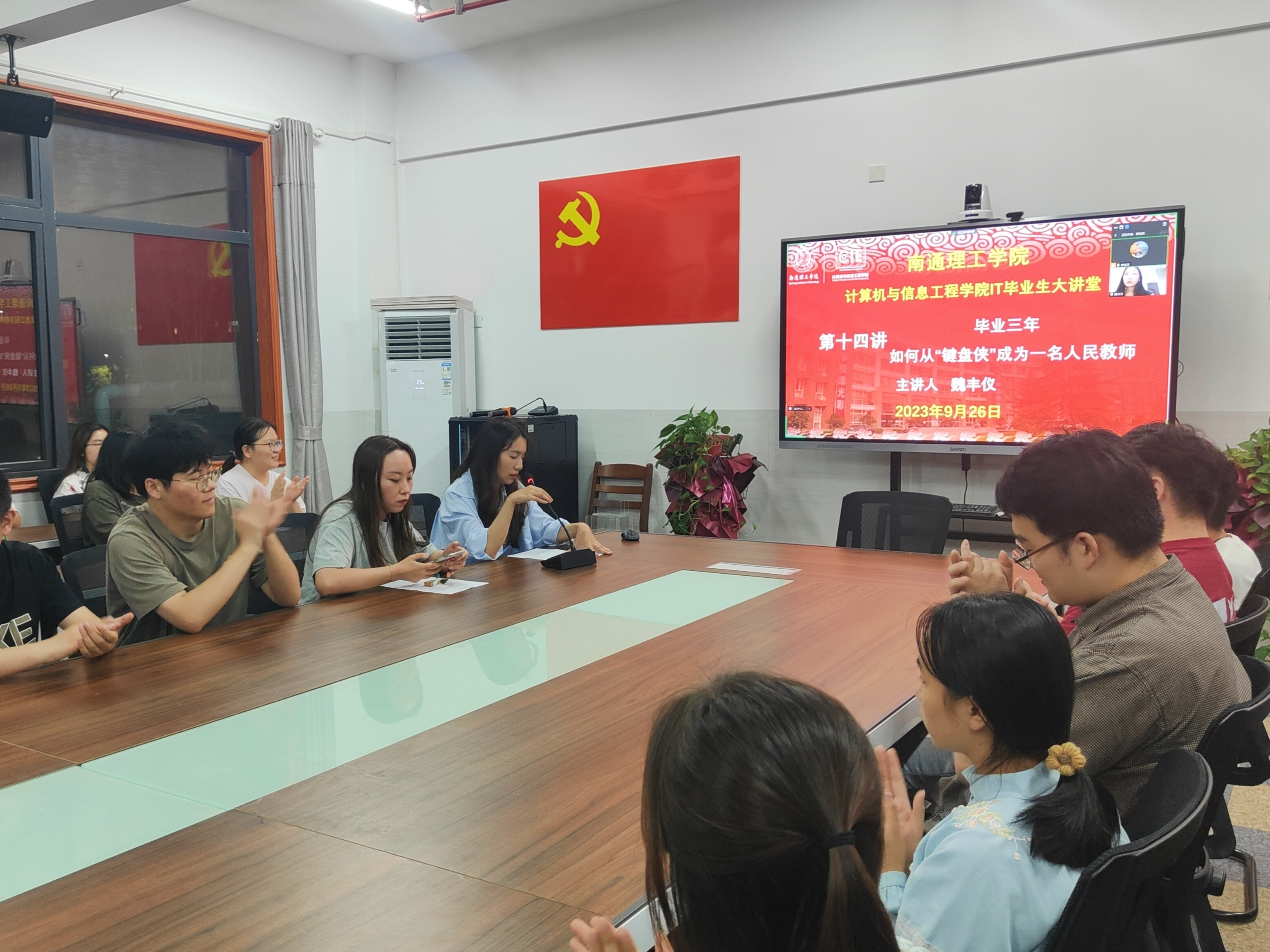 讲座以线上线下同步进行,南通、海安两校区各设会场。参加本次活动的有bwin必赢党总支副书记副院长卢曦以及我院海安校区学生代表,活动由我院分团委书记郝佳萍主持。