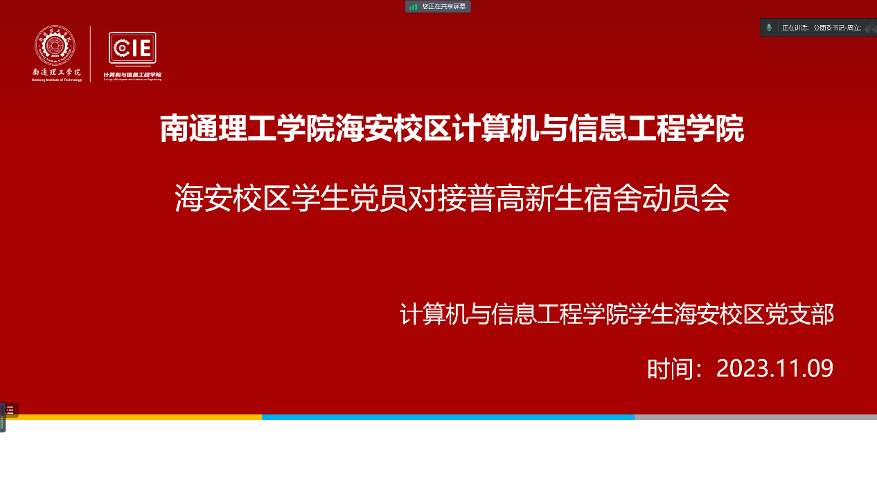 为推动新生紧跟党的步伐,11月8日晚,我院于厚德楼317会议室开展学生党员对接普高新生宿舍动员会。参加此次会议的有我院分团委书记周立以及所有学生党员。本次会议以线上的形式开展。会议由周立主持。
