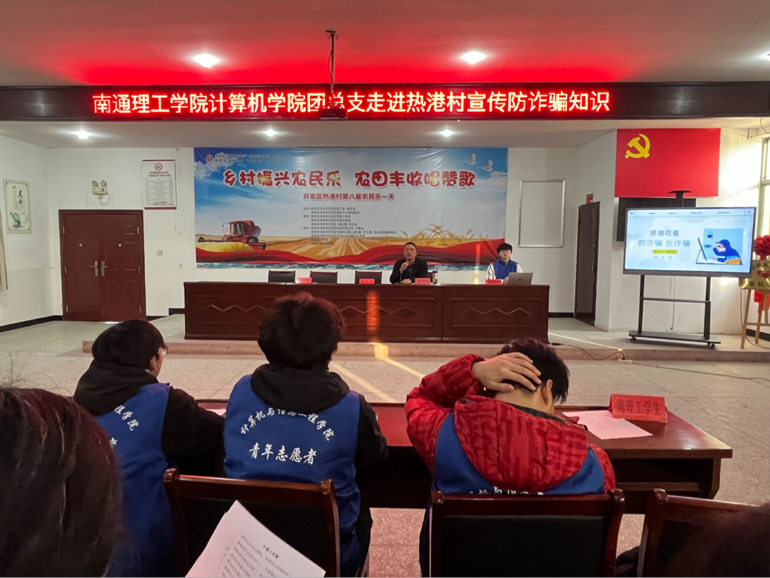 11月16日下午,我院团支部开展对接热港村防诈骗宣传活动,参加本次活动的有热港村党支部书记杭庆富、党支部副书记崔四荣,我院分团委书记周立、辅导员戴文鑫和所有的党员村民以及团支部代表。本次活动由网络2201班团支书杨晓星主持。