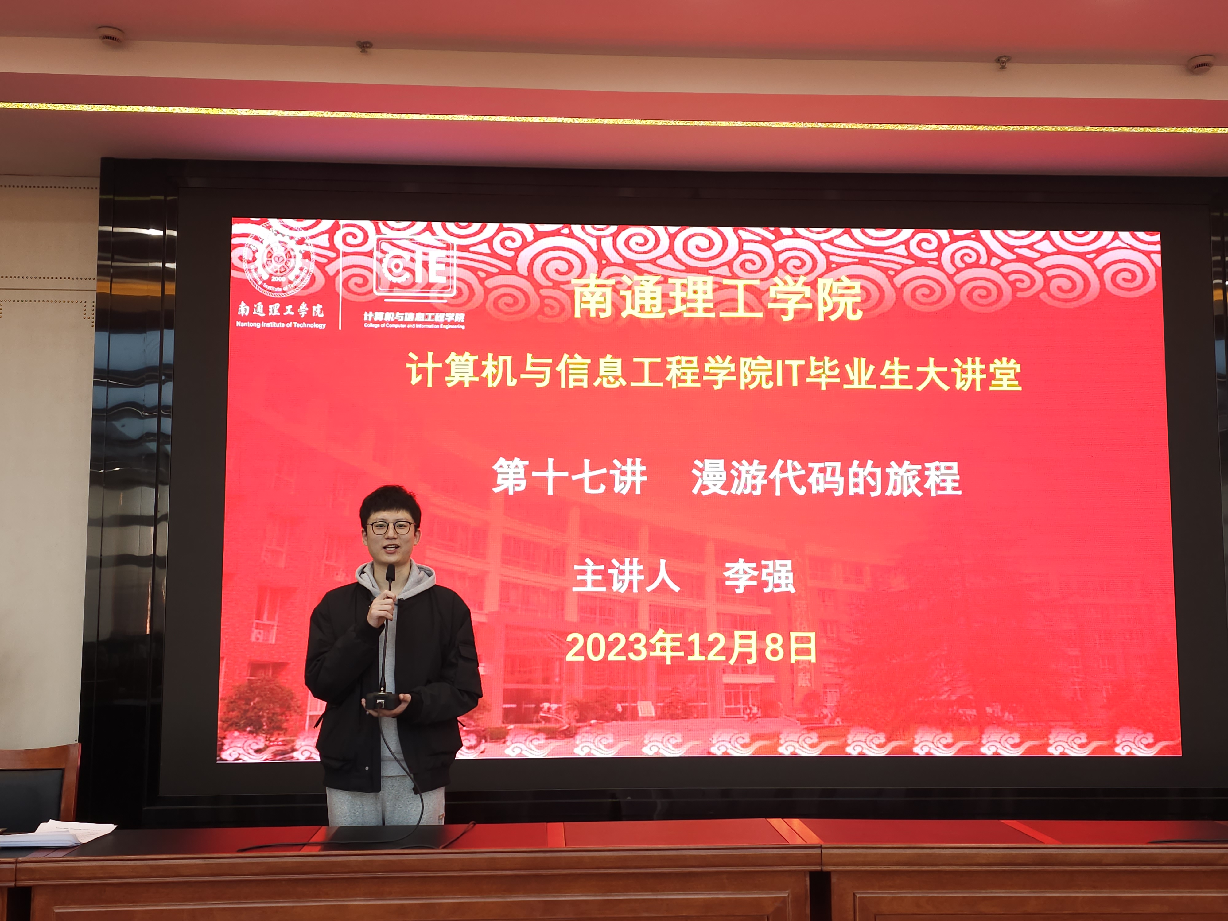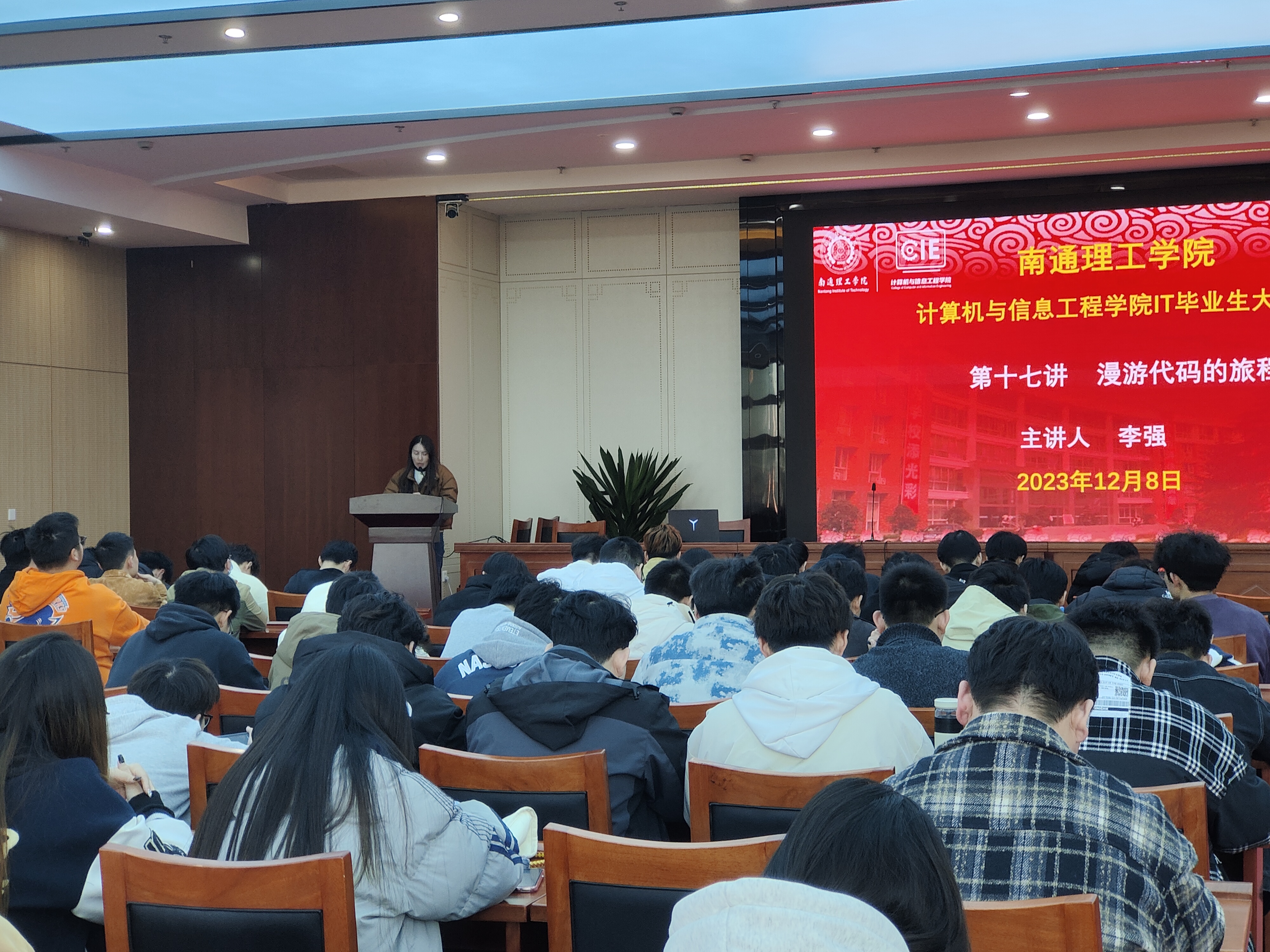 为帮助我院学生树立更加明确的职业目标,认清当下就业形式,12月8日,bwin必赢在南通校区图书馆天南厅举行了“毕业生大讲堂”第十七讲“漫游代码的旅程”。参加本次活动的有bwin必赢党总支副书记副院长卢曦、院就业办公室主任徐畅以及我院师生代表,本次活动由徐畅主持。