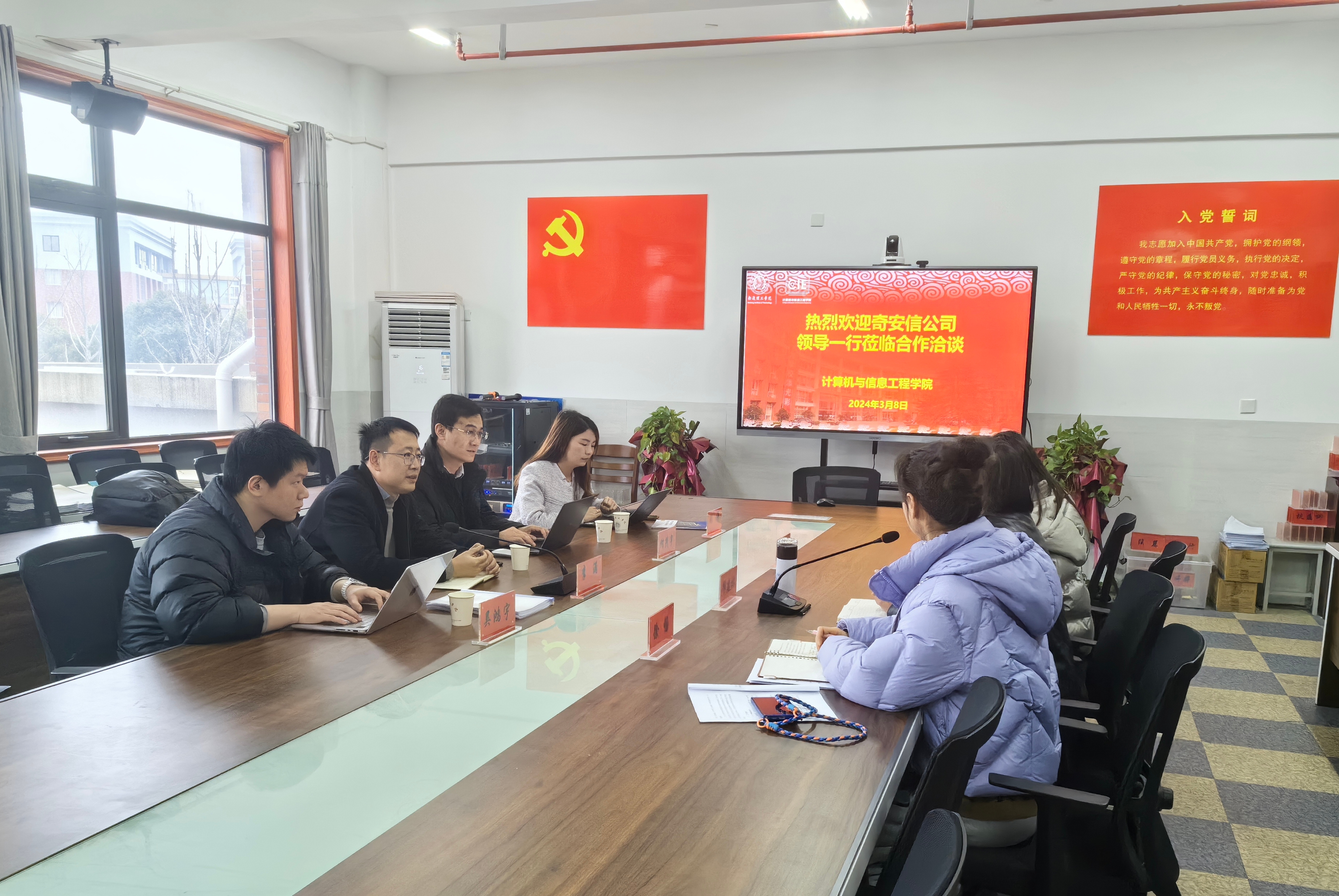 为有效推进校企合作深入进行,促进就业,3月8日,我院再次邀请奇安信集团来校进一步洽谈校企合作事宜。本次洽谈在南通校区新实验楼210会议室进行,学院党总支副书记副院长卢曦、院就业办公室主任徐畅、奇安信江苏特区技术总监李满等一行四人参加会议。