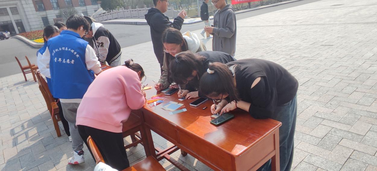 活动开始,负责人郑语彤提前到达现场并安排各项工作部署以确保本次活动井然有序地开展。工作人员组织参与本次活动的同学们依次按照先后顺序排好队伍。同时,他们也做好搬运活动所需物品、布置活动现场、维持现场秩序等工作。接着,同学们按照工作人员指示在横幅上用黑笔签下自己名字。随后,工作人员向同学们发放便签纸,同学们将自己的心愿写在便签纸上并挂在树枝上。活动结束后,负责人徐利豪带领全体工作人员们一起清洁现场环境、回收剩余旧物,以实际行动来践行绿色环保的发展理念。