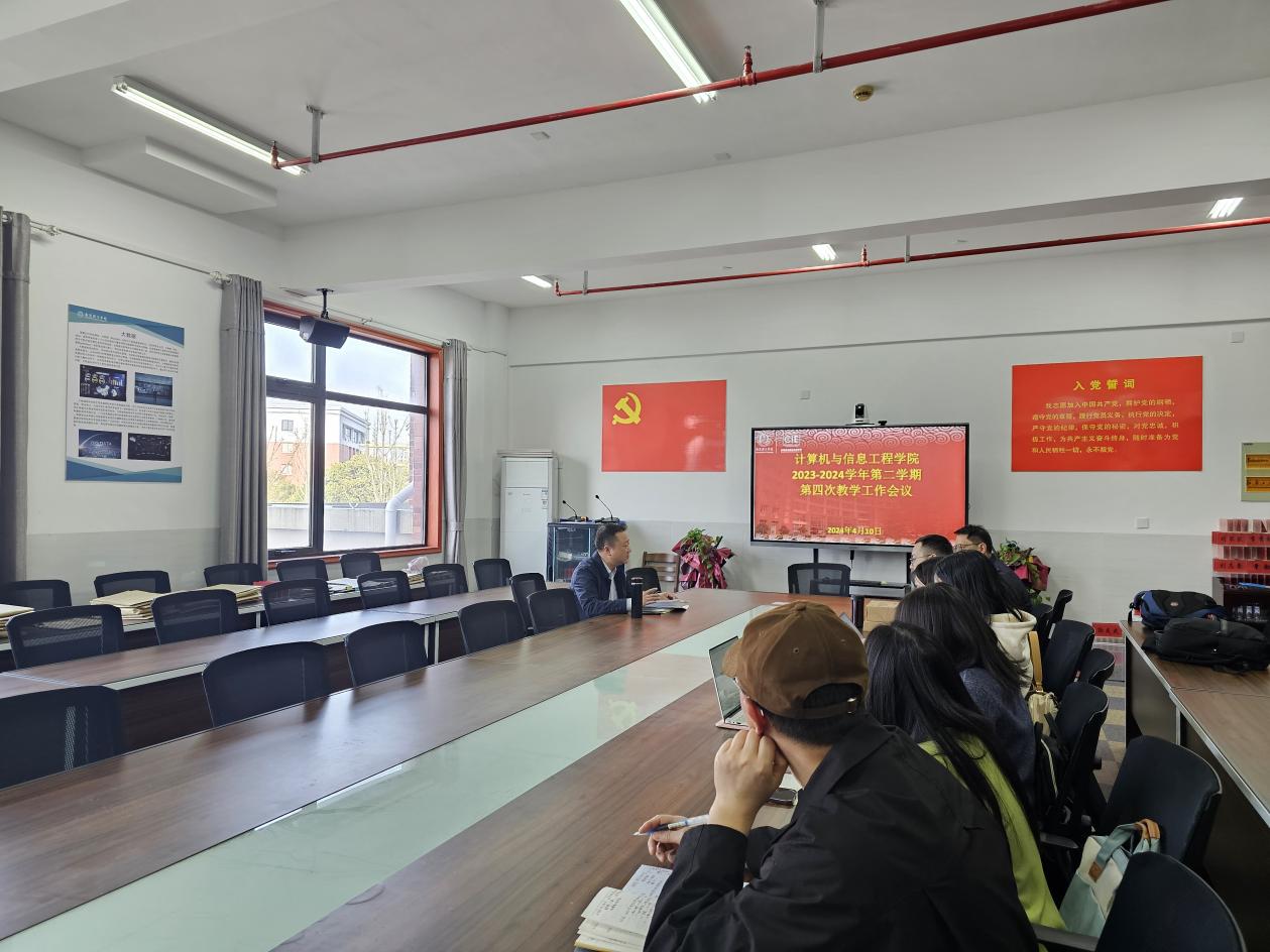2024年4月10日下午,bwin必赢在实验楼210通过线上线下相结合的方式召开2023-2024学年第二学期第四次教学工作会议。会议由学院副院长张海飞主持,全体教研室主任参加会议。