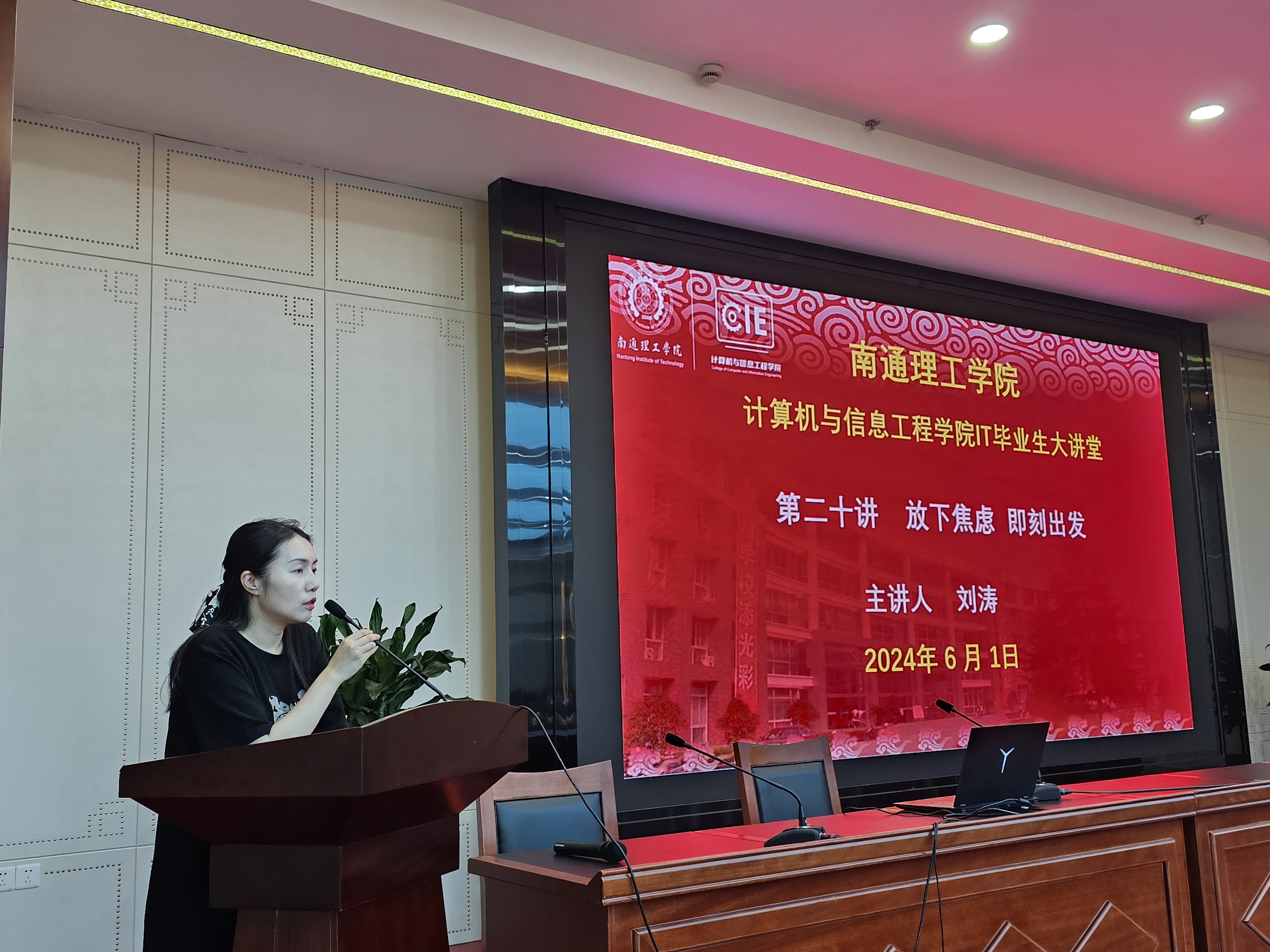 2024年6月1日,bwin必赢在南通校区图书馆天南厅开展“毕业生大讲堂”第二十一讲——“放下焦虑,即刻出发”活动。本次讲座主讲人为我院2020届优秀毕业生刘涛,我院党总支副书记副院长卢曦主持本次活动。