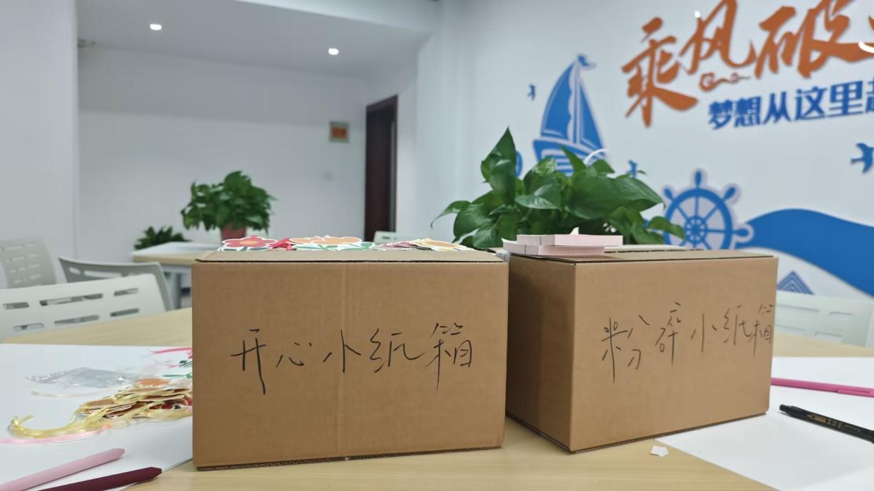 活动伊始,主办方为参与活动的同学准备好便签并讲解活动流程。以“便签投纸箱”为主要形式,摆放着几个分别标记着不同情绪类别的纸箱,这些纸箱就像是一个个情绪的收纳盒。同学们满怀期待地拿起笔,认真地在便签上书写自己当下各种各样的情绪或者烦恼——或许是对即将来临的考试的紧张焦虑,或许是在成长路上对未来方向迷茫的惆怅。接着,同学们将便签投入对应情绪的纸箱内,这一投仿佛把心中的情绪包袱卸了下来,也是一种将烦恼倾诉出去的无声举动。活动现场充满积极的氛围,同学们都在以这种独特且富有意义的方式进行着情绪的表达和释放,开启一场心灵的倾诉之旅。